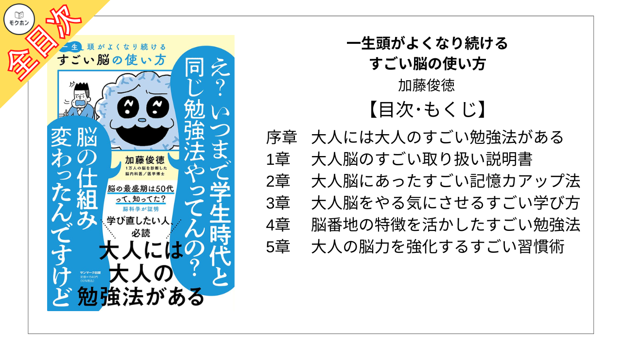 【全目次】一生頭がよくなり続ける すごい脳の使い方 / 加藤俊徳【要約・もくじ・評価感想】