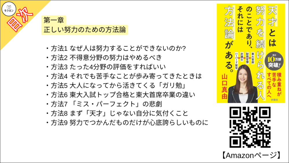 【天才とは努力を続けられる人のことであり、それには方法論がある。 目次】第一章 正しい努力のための方法論【山口真由・要約・もくじ】