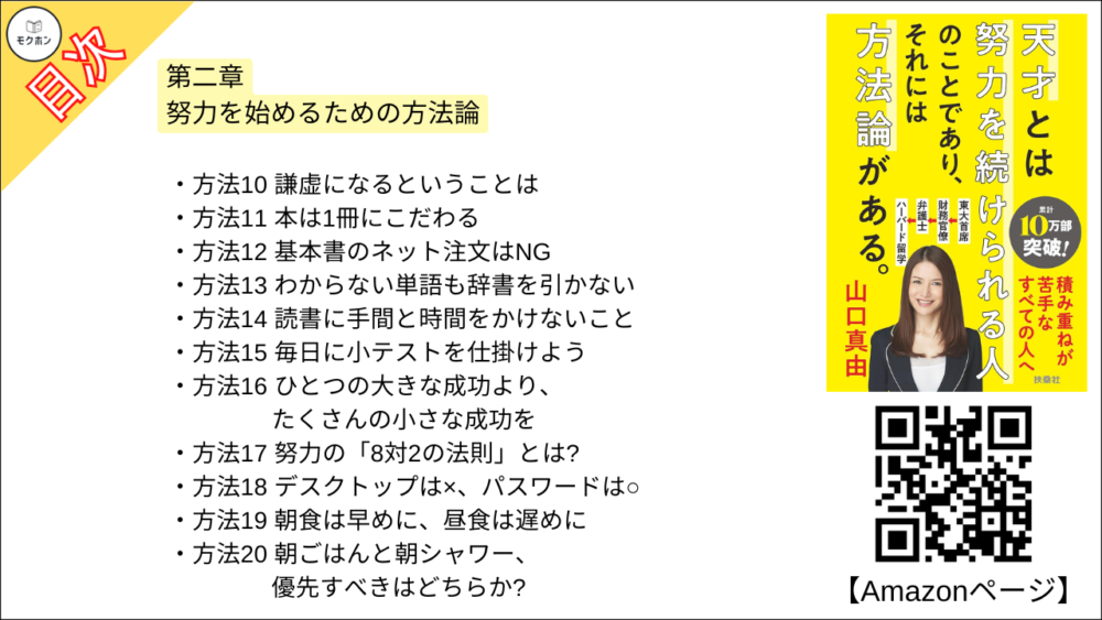 【天才とは努力を続けられる人のことであり、それには方法論がある。 目次】第二章 努力を始めるための方法論【山口真由・要約・もくじ】