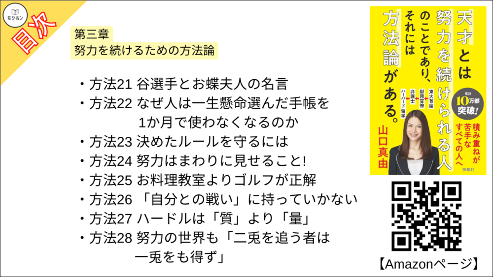 【天才とは努力を続けられる人のことであり、それには方法論がある。 目次】第三章 努力を続けるための方法論【山口真由・要約・もくじ】