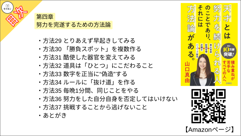 【天才とは努力を続けられる人のことであり、それには方法論がある。 目次】第四章 努力を完遂するための方法論【山口真由・要約・もくじ】