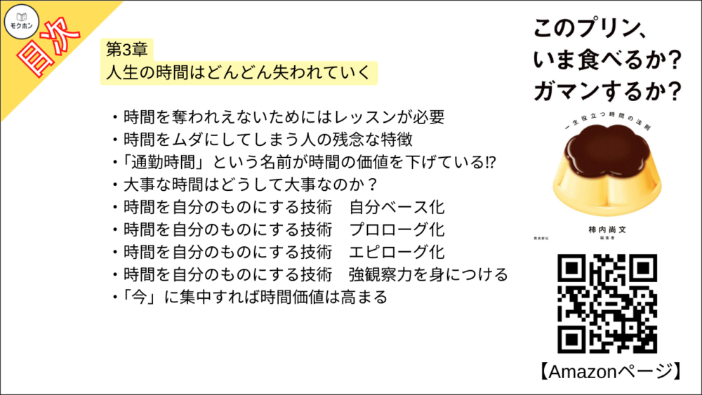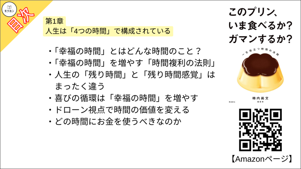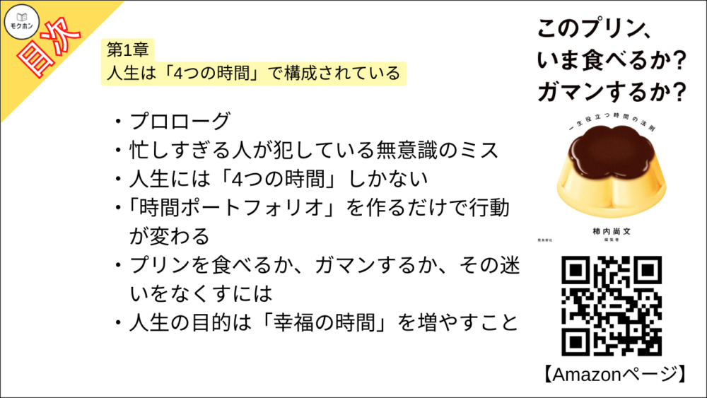 【このプリン、いま食べるか? ガマンするか? 一生役立つ時間の法則 目次】第1章 人生は「4つの時間」で構成されている【柿内尚文・要約・もくじ】