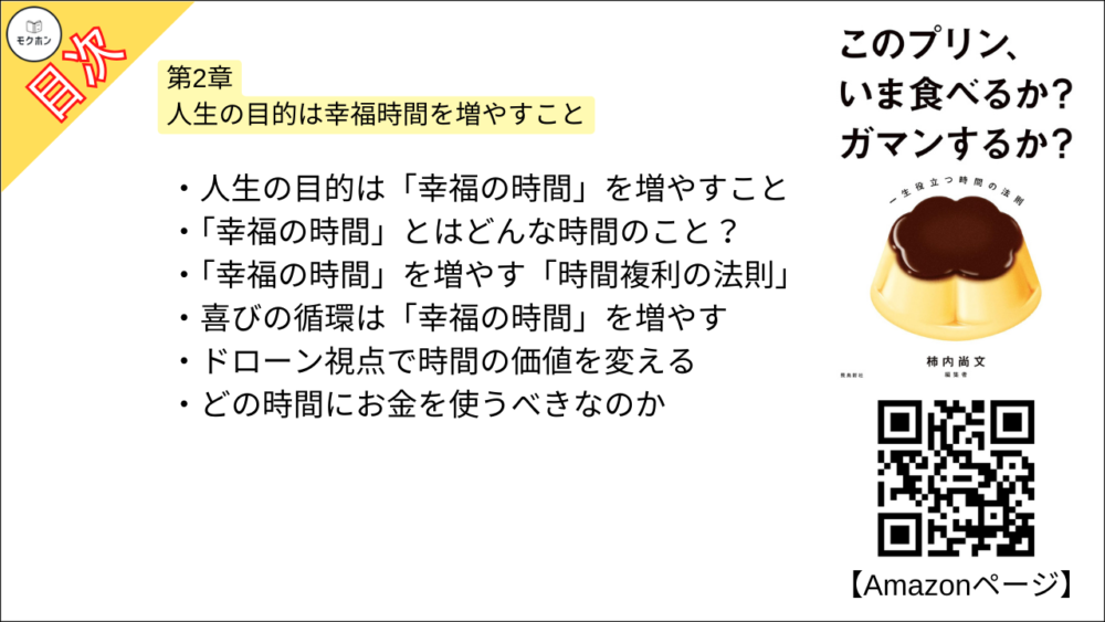 【このプリン、いま食べるか? ガマンするか? 一生役立つ時間の法則 目次】第2章 人生の目的は幸福時間を増やすこと【柿内尚文・要約・もくじ】