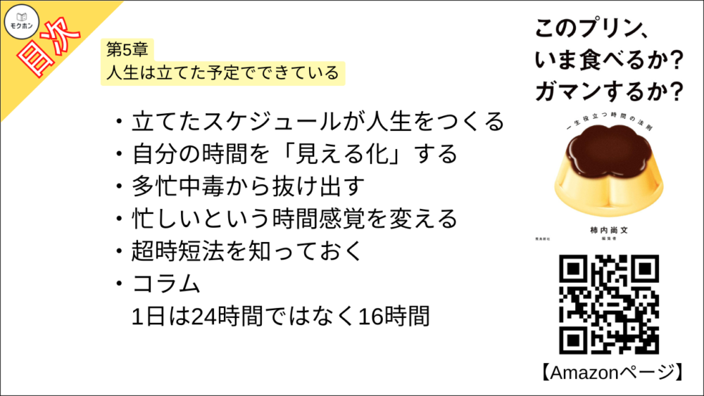 【このプリン、いま食べるか? ガマンするか? 一生役立つ時間の法則 目次】第5章 人生は立てた予定でできている【柿内尚文・要約・もくじ】