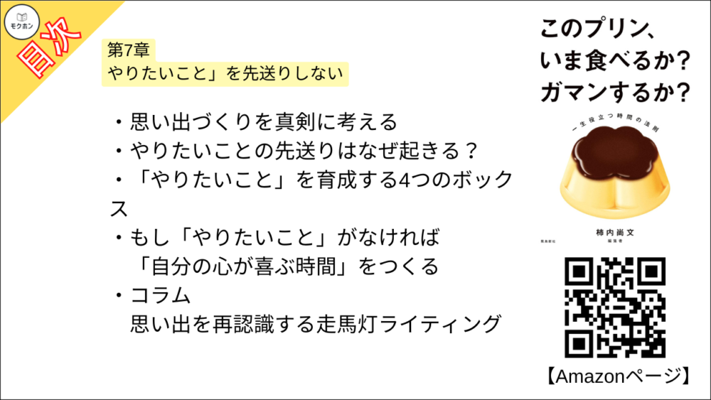 【このプリン、いま食べるか? ガマンするか? 一生役立つ時間の法則 目次】第7章「やりたいこと」を先送りしない【柿内尚文・要約・もくじ】