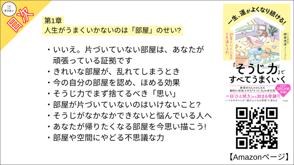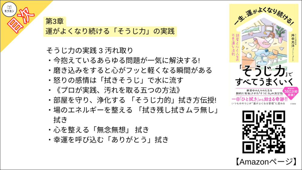 【全目次】一生、運がよくなり続ける!「そうじ力」ですべてうまくいく 部屋と心と人生の不思議な法則 / 舛田 光洋【要約・もくじ・評価感想】#そうじ力ですべてうまくいく #そうじ #舛田光洋