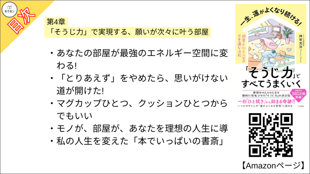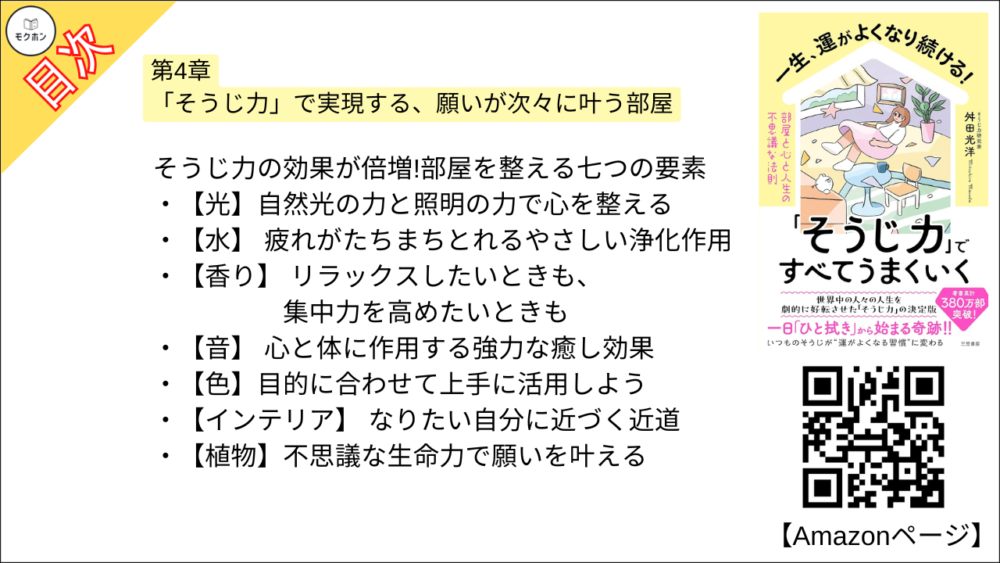 【一生、運がよくなり続ける!「そうじ力」ですべてうまくいく 部屋と心と人生の不思議な法則 目次】第4章 「そうじ力」で実現する、願いが次々に叶う部屋【舛田光洋・要約・もくじ】
