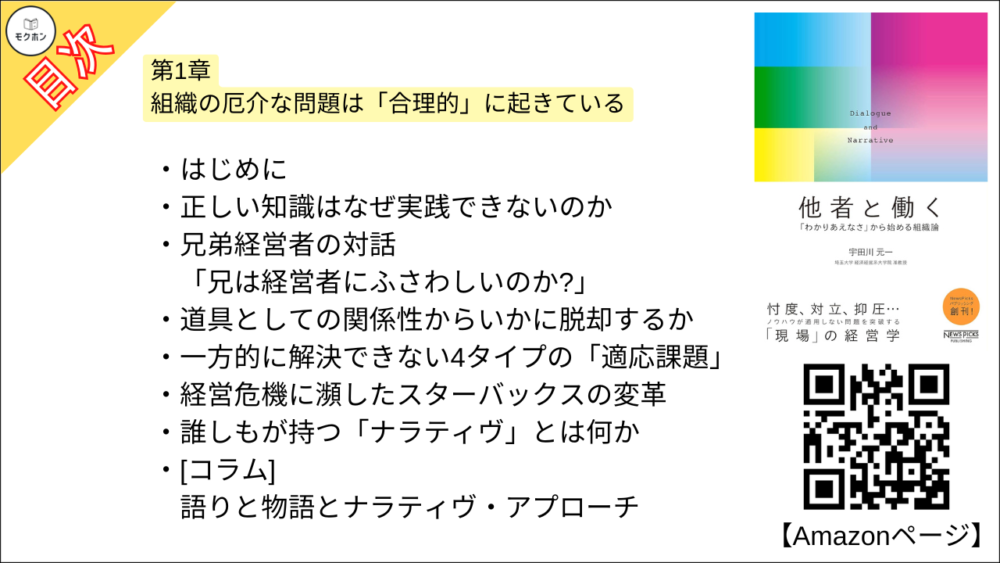 【他者と働く──「わかりあえなさ」から始める組織論 目次】第1章 組織の厄介な問題は「合理的」に起きている【宇田川元一・要約・もくじ】