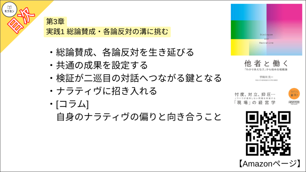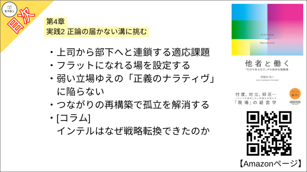 【他者と働く──「わかりあえなさ」から始める組織論 目次】第4章 実践2 正論の届かない溝に挑む【宇田川元一・要約・もくじ】