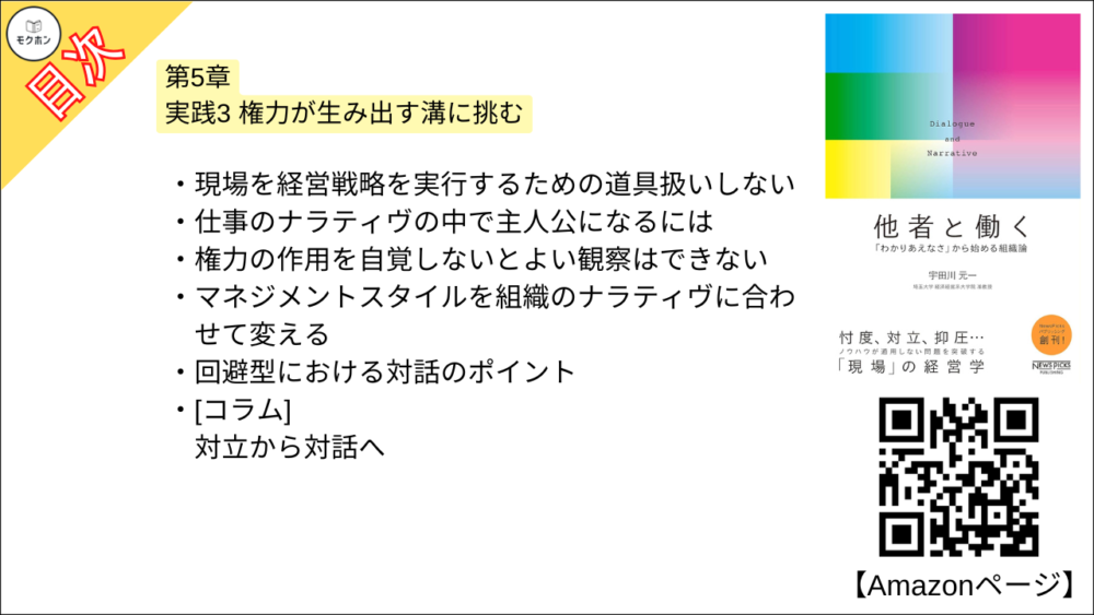 【他者と働く──「わかりあえなさ」から始める組織論 目次】第5章 実践3 権力が生み出す溝に挑む【宇田川元一・要約・もくじ】