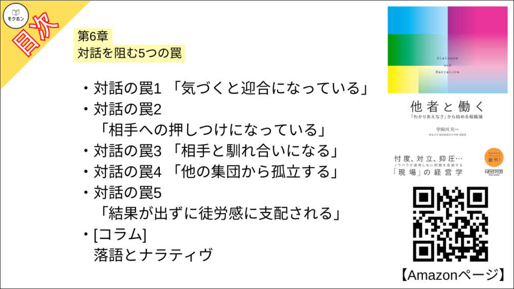 【他者と働く──「わかりあえなさ」から始める組織論 目次】第6章 対話を阻む5つの罠【宇田川元一・要約・もくじ】