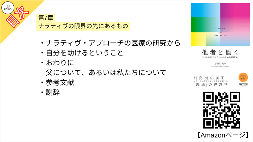 【他者と働く──「わかりあえなさ」から始める組織論 目次】第7章 ナラティヴの限界の先にあるもの【宇田川元一・要約・もくじ】