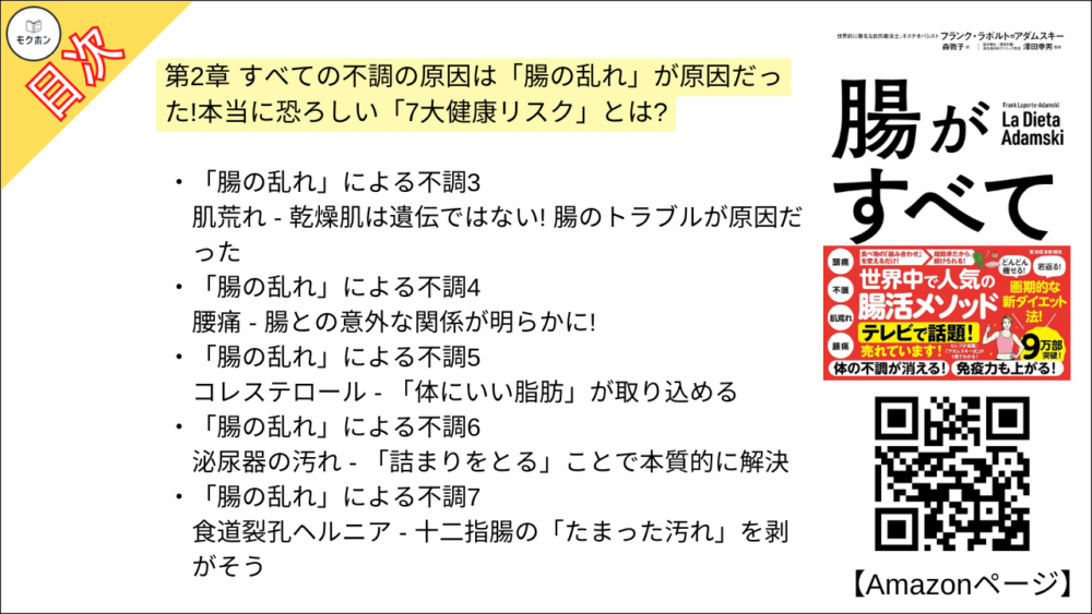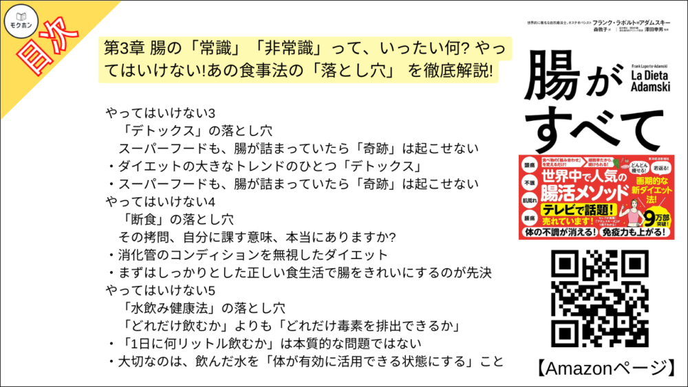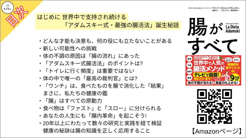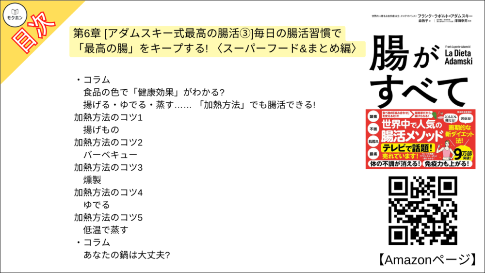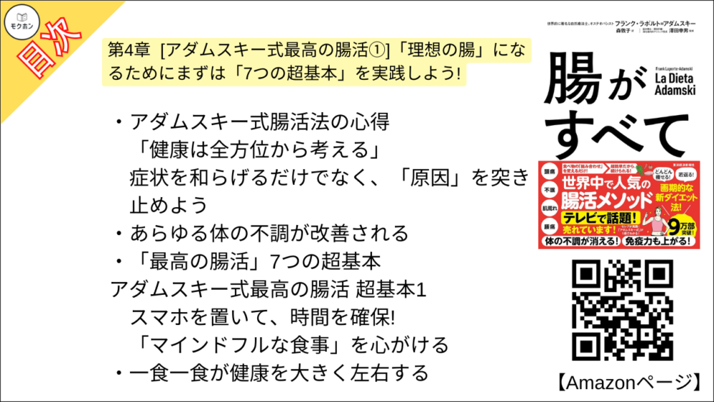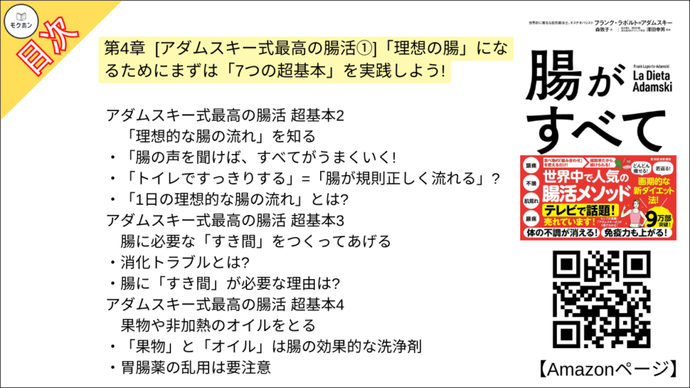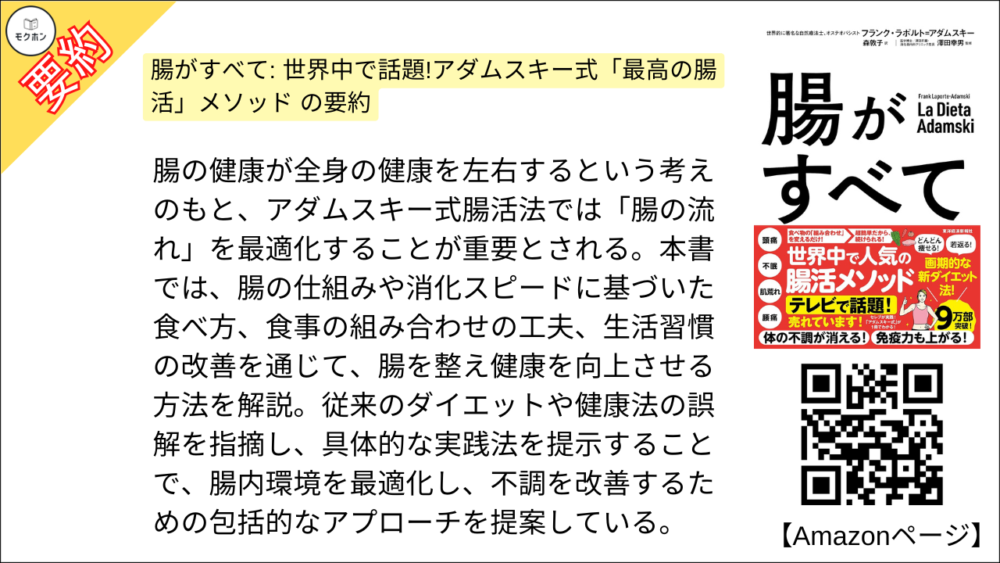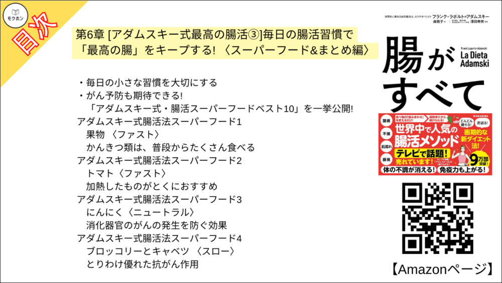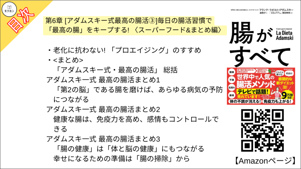 ![【腸がすべて: 世界中で話題!アダムスキー式「最高の腸活」メソッド 目次】第6章 [アダムスキー式最高の腸活③]毎日の腸活習慣で「最高の腸」をキープする!〈スーパーフード&まとめ編〉【フランク・ラポルト=アダムスキー・要約・もくじ】](https://mokuhon.net/wp-content/uploads/2025/02/16-3-1000x563.png)