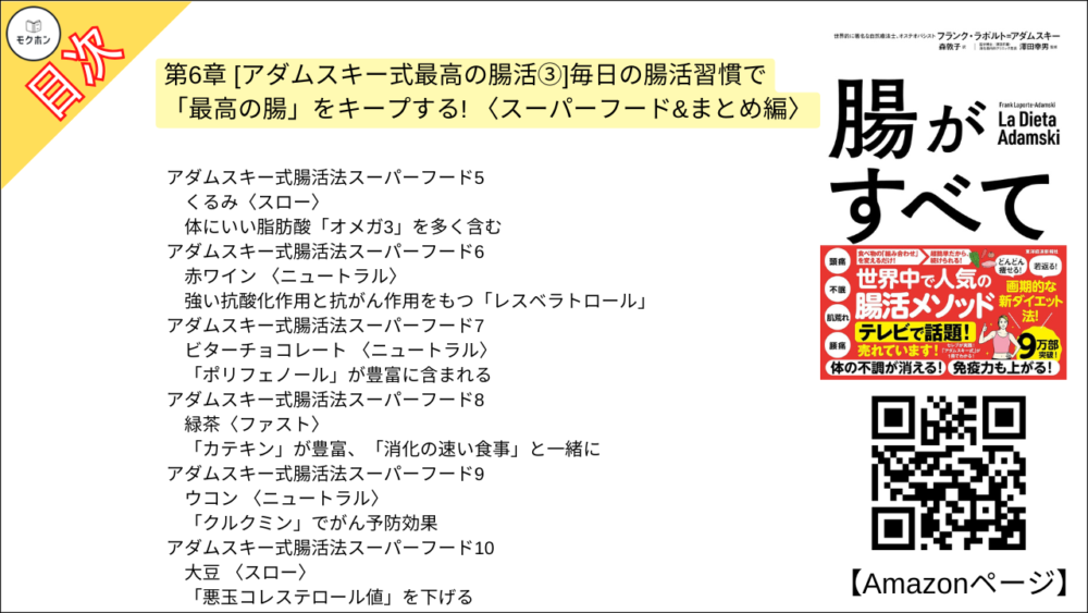 ![【腸がすべて: 世界中で話題!アダムスキー式「最高の腸活」メソッド 目次】第6章 [アダムスキー式最高の腸活③]毎日の腸活習慣で「最高の腸」をキープする!〈スーパーフード&まとめ編〉【フランク・ラポルト=アダムスキー・要約・もくじ】](https://mokuhon.net/wp-content/uploads/2025/02/15-5-1000x563.png)