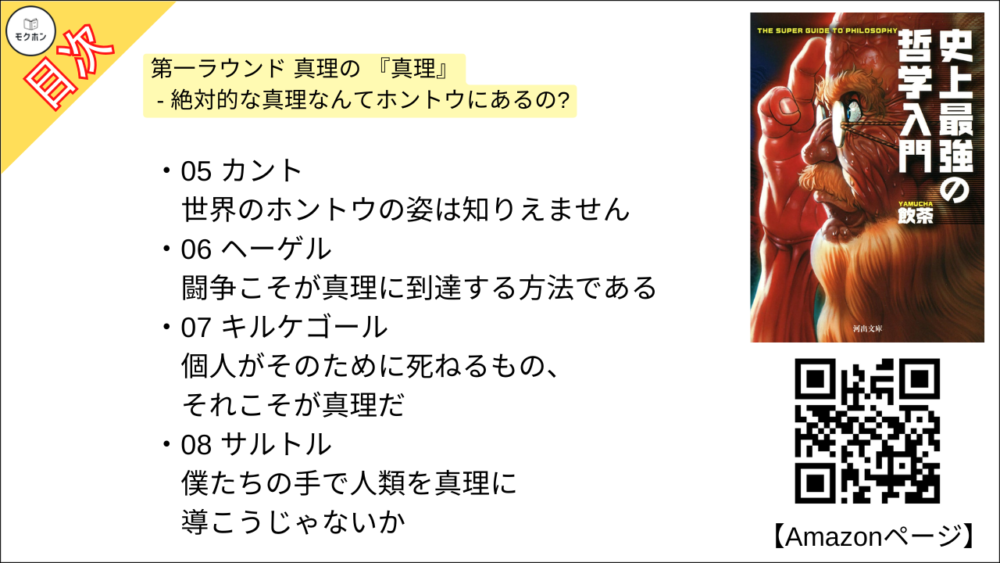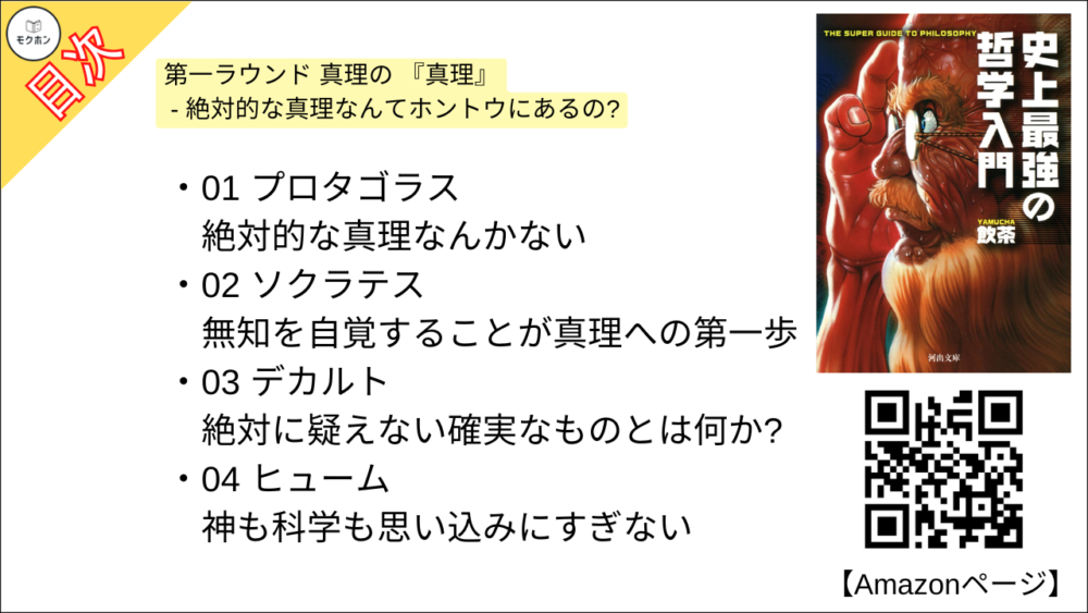 【史上最強の哲学入門 目次】第一ラウンド 真理の 『真理』- 絶対的な真理なんてホントウにあるの?【飲茶・要約・もくじ】