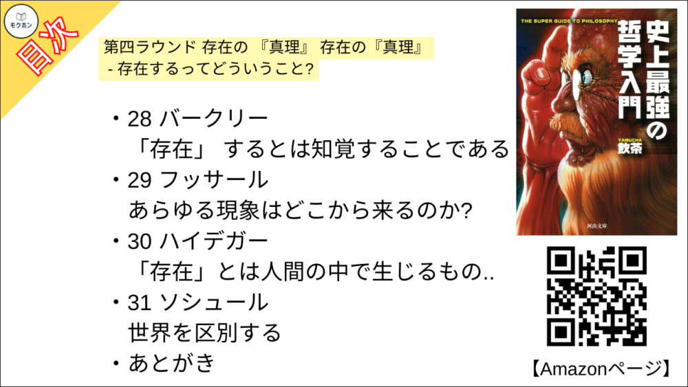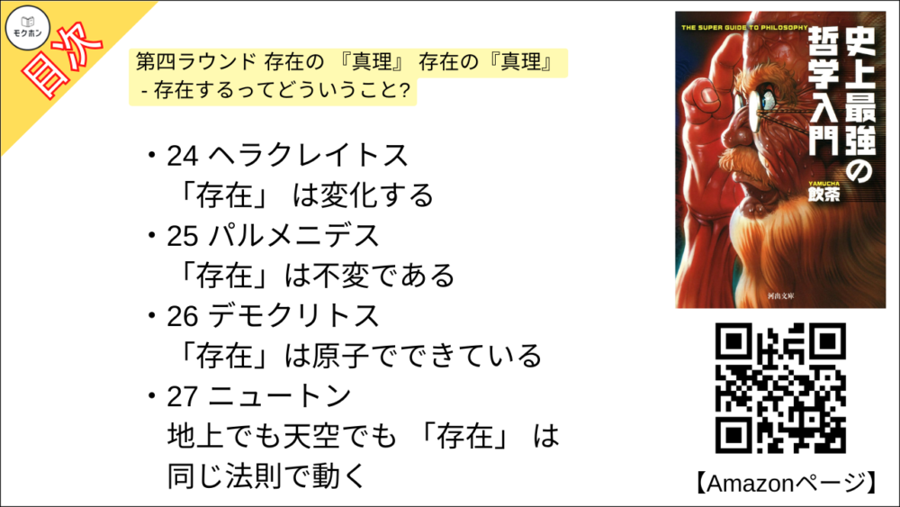 【史上最強の哲学入門 目次】第四ラウンド 存在の 『真理』 存在の『真理』 – 存在するってどういうこと?【飲茶・要約・もくじ】
