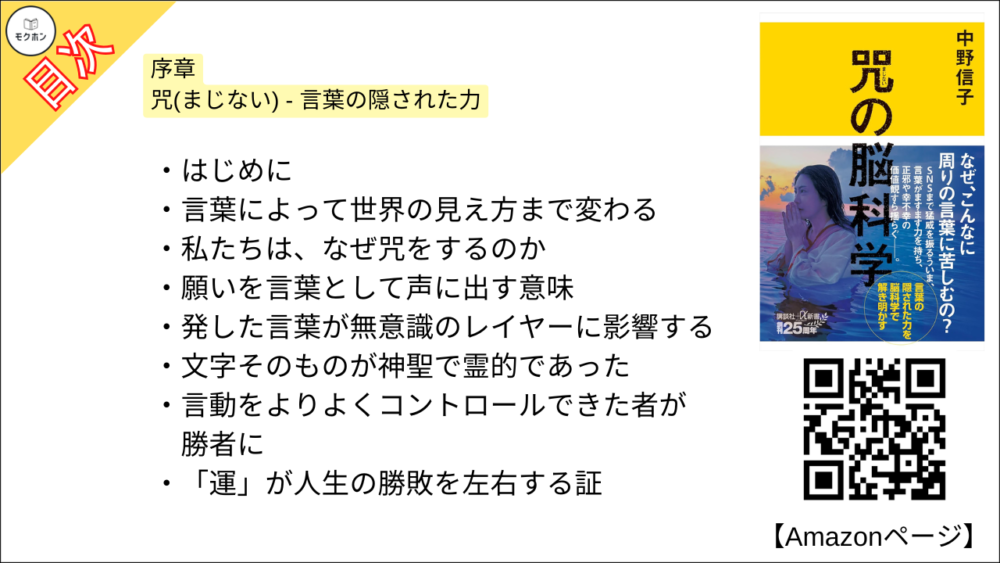 【咒(まじない)の脳科学 目次】序章 咒(まじない) – 言葉の隠された力【中野信子・要約・もくじ】