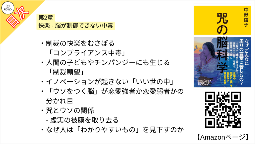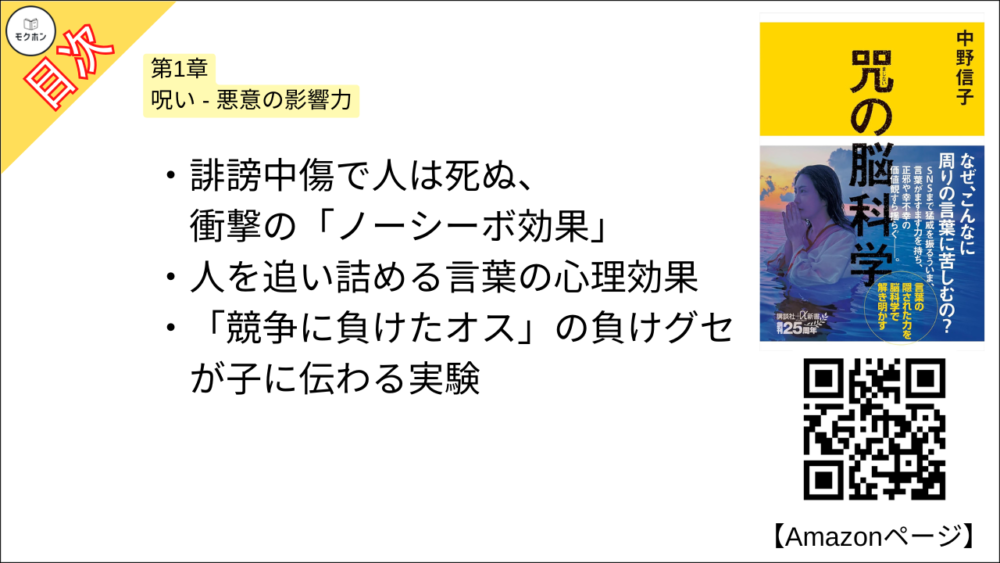 【咒(まじない)の脳科学 目次】第1章 呪い – 悪意の影響力【中野信子・要約・もくじ】