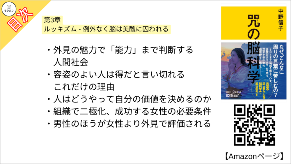 【咒(まじない)の脳科学 目次】第3章 ルッキズム – 例外なく脳は美醜に囚われる【中野信子・要約・もくじ】