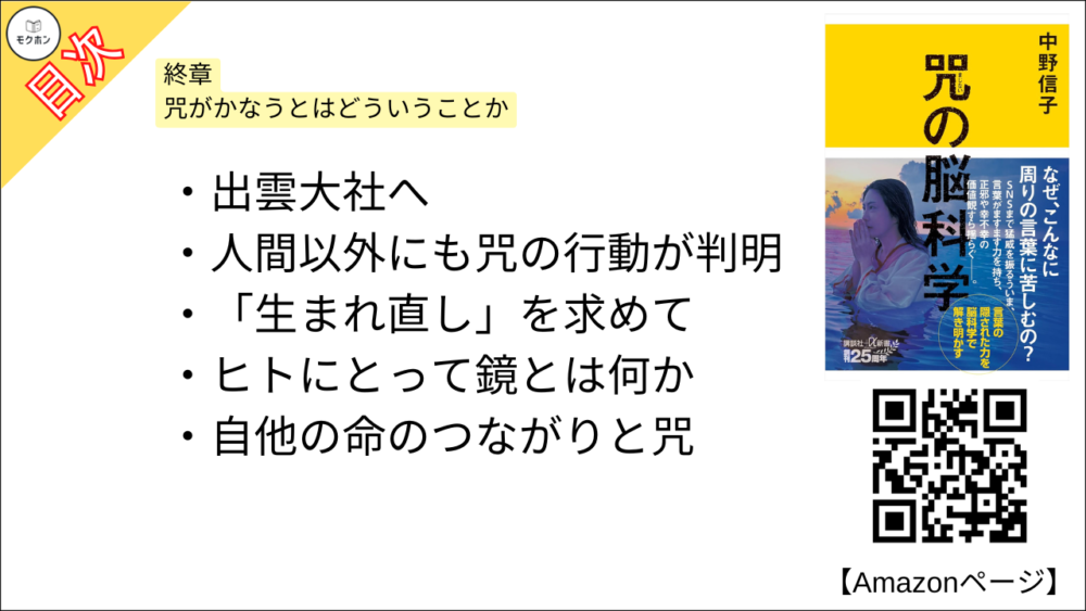 【咒(まじない)の脳科学 目次】終章 咒がかなうとはどういうことか【中野信子・要約・もくじ】