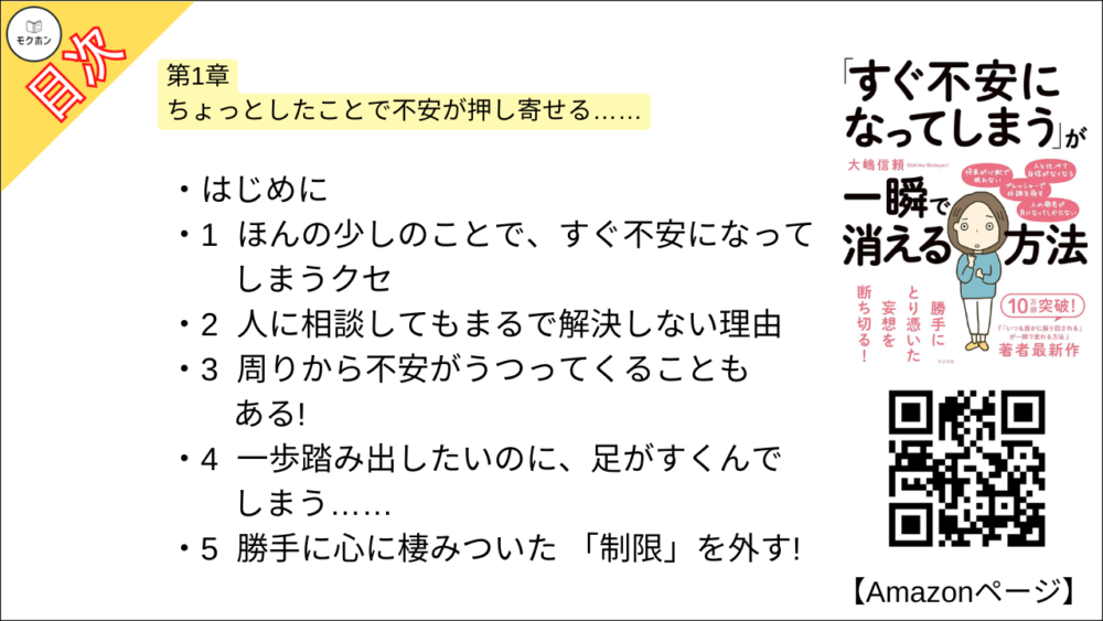 【「すぐ不安になってしまう」が一瞬で消える方法 目次】第1章 ちょっとしたことで不安が押し寄せる……【大嶋信頼・要約・もくじ】
