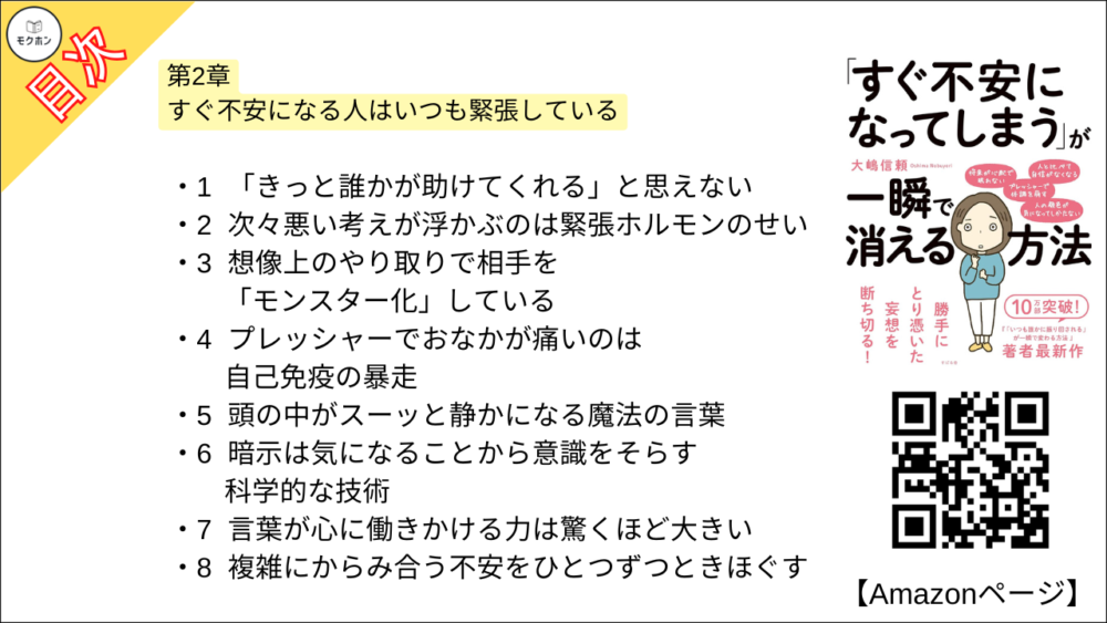 大嶋信頼さんの「「すぐ不安になってしまう」が一瞬で消える方法」の全もくじを紹介します。