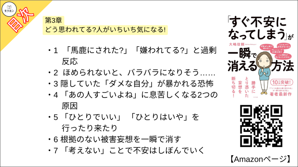 【「すぐ不安になってしまう」が一瞬で消える方法 目次】第3章 どう思われてる?人がいちいち気になる!【大嶋信頼・要約・もくじ】