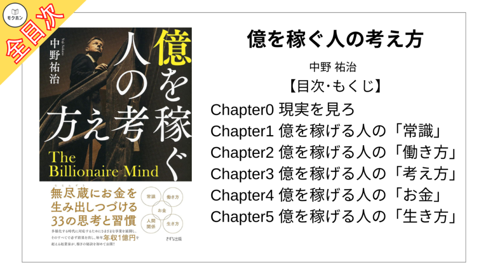 【全目次】億を稼ぐ人の考え方 / 中野 祐治【要約・もくじ・評価感想】 #億を稼ぐ人の考え方 #中野祐治
