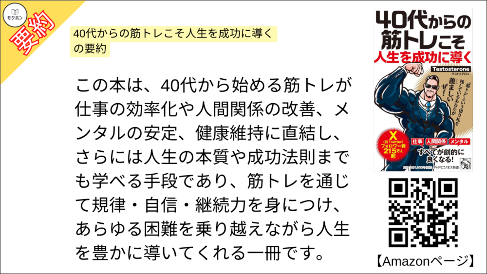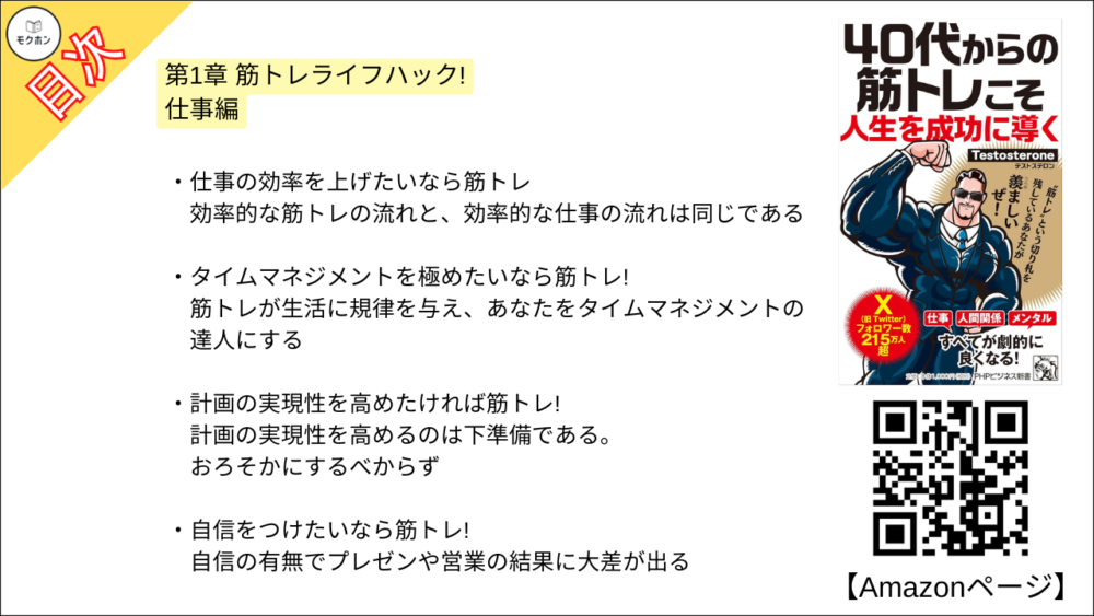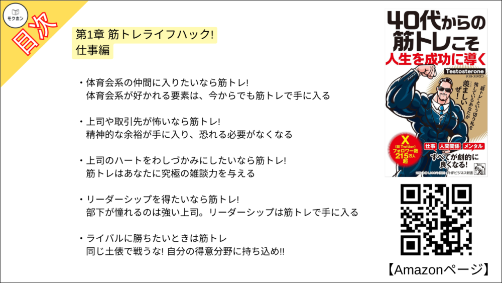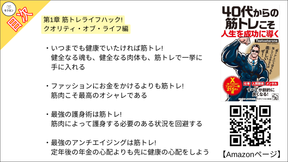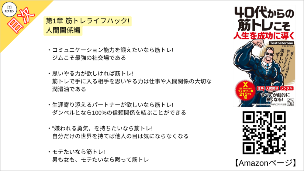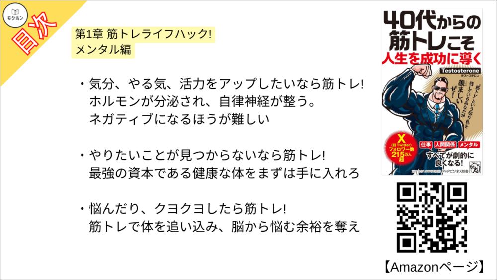 【全目次】40代からの筋トレこそ人生を成功に導く / Testosterone(テストステロン)【要約・もくじ・評価感想】 #40代からの筋トレこそ人生を成功に導く #筋トレ#Testosterone #テストステロン