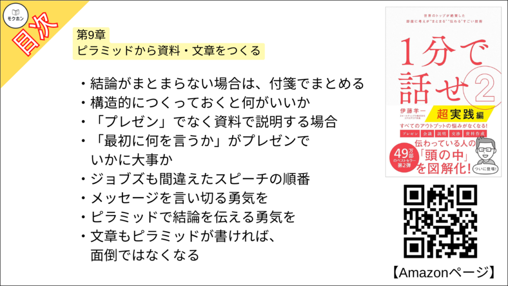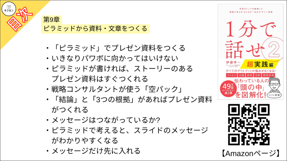 【1分で話せ2【超実践編】 目次】第9章 ピラミッドから資料・文章をつくる【伊藤羊一・要点・もくじ】