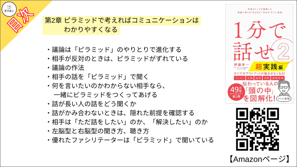 【1分で話せ2【超実践編】 目次】第2章 ピラミッドで考えればコミュニケーションはわかりやすくなる【伊藤羊一・要点・もくじ】
