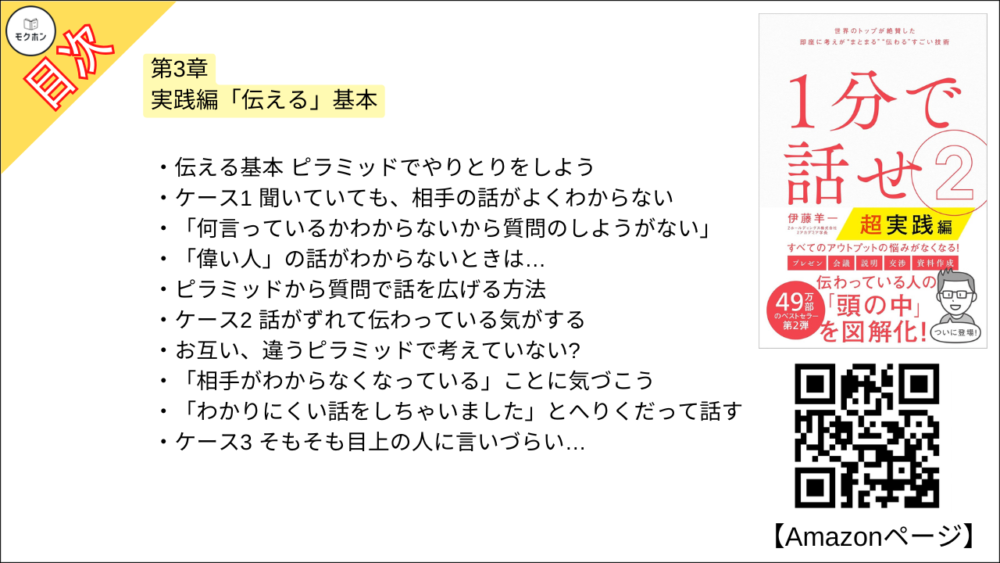 【1分で話せ2【超実践編】 目次】第3章 実践編「伝える」基本【伊藤羊一・要点・もくじ】