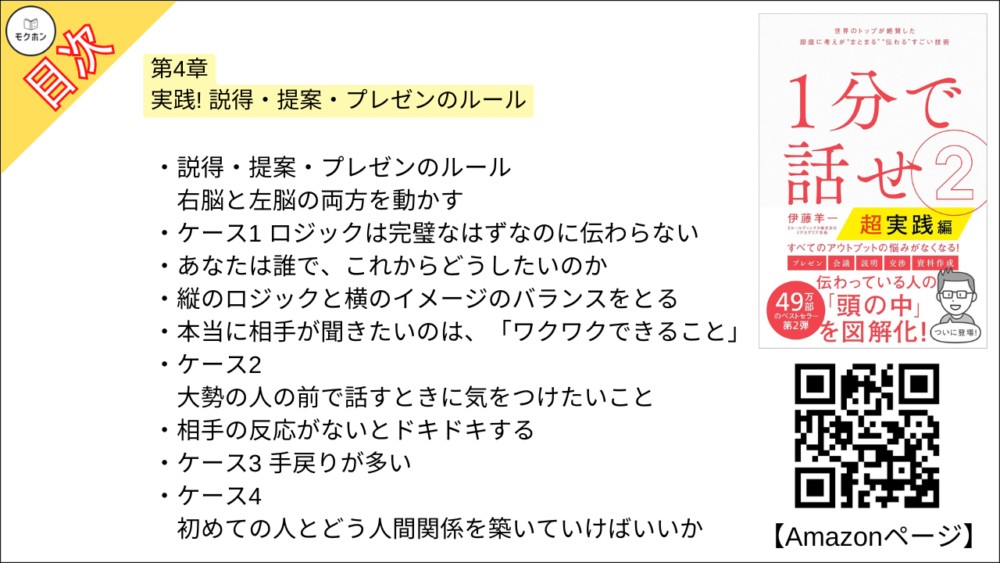 【1分で話せ2【超実践編】 目次】第4章 実践! 説得・提案・プレゼンのルール【伊藤羊一・要点・もくじ】
