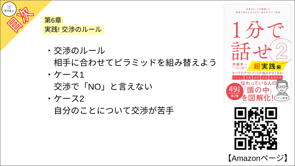 【1分で話せ2【超実践編】 目次】第6章 実践! 交渉のルール【伊藤羊一・要点・もくじ】