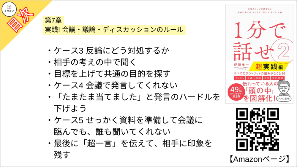 【1分で話せ2【超実践編】 目次】第7章 実践!会議・議論・ディスカッションのルール【伊藤羊一・要点・もくじ】