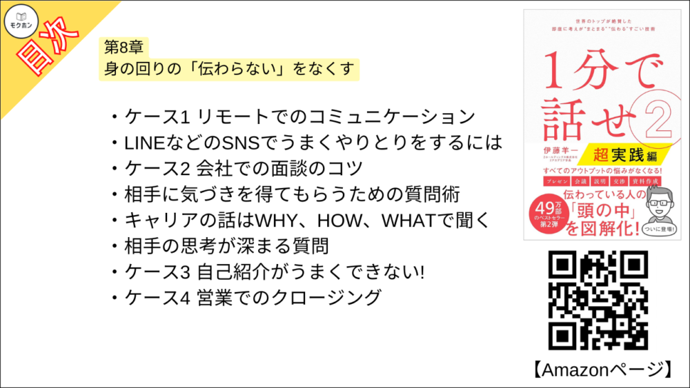 【1分で話せ2【超実践編】 目次】第8章 身の回りの「伝わらない」をなくす【伊藤羊一・要点・もくじ】
