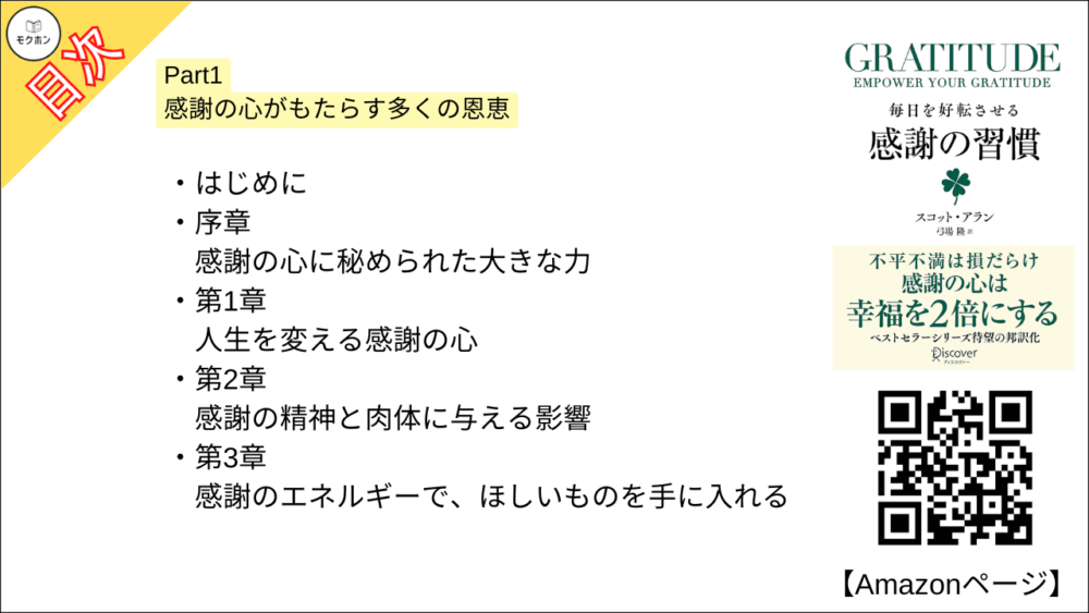 スコット・アランさんの「GRATITUDE (グラティチュード) 毎日を好転させる感謝の習慣」の全もくじを紹介します。