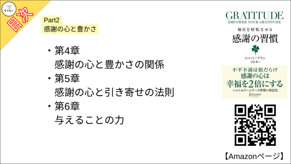 【GRATITUDE (グラティチュード) 目次】Part2 感謝の心と豊かさ【スコット・アラン・要点・もくじ】