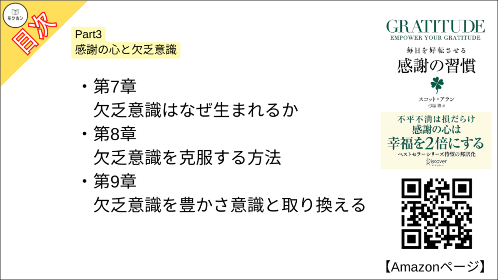 【GRATITUDE (グラティチュード) 目次】Part3 感謝の心と欠乏意識【スコット・アラン・要点・もくじ】