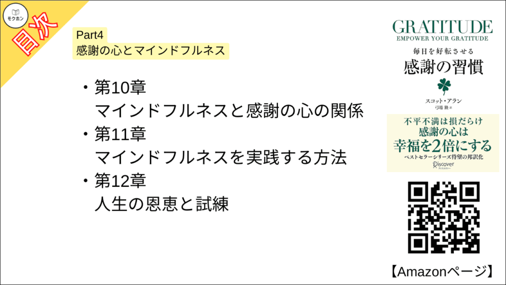 【GRATITUDE (グラティチュード) 目次】Part4 感謝の心とマインドフルネス【スコット・アラン・要点・もくじ】