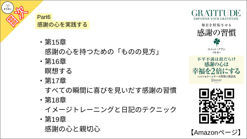 【GRATITUDE (グラティチュード) 目次】Part6 感謝の心を実践する【スコット・アラン・要点・もくじ】