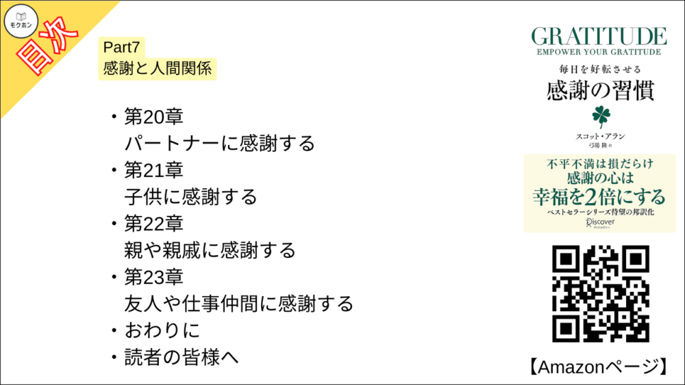 【GRATITUDE (グラティチュード) 目次】Part7 感謝と人間関係【スコット・アラン・要点・もくじ】