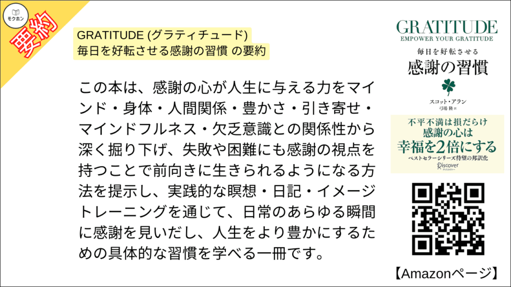 【全目次】GRATITUDE (グラティチュード) 毎日を好転させる感謝の習慣 / スコット・アラン【要約・もくじ・評価感想】 #GRATITUDE #感謝 #スコットアラン