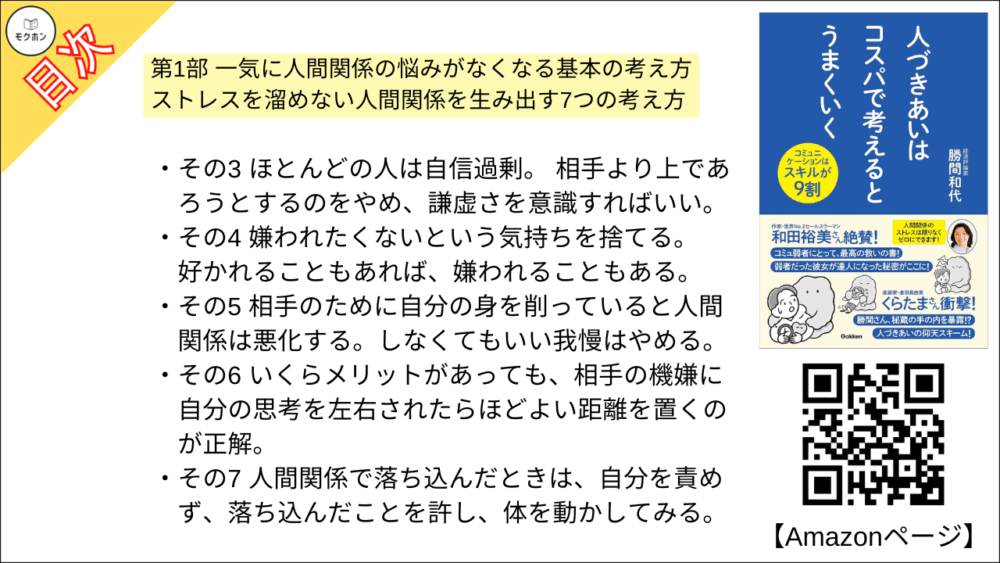【全目次】人づきあいはコスパで考えるとうまくいく コミュニケーションはスキルが9割 / 勝間和代【要約・もくじ・評価感想】 #人づきあいはコスパで考えるとうまくいく #勝間和代