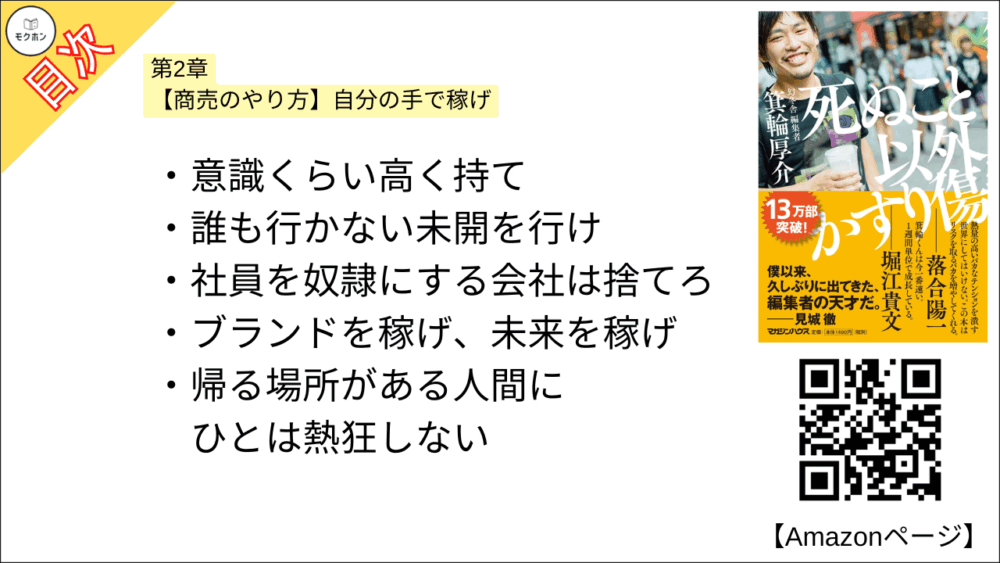 【死ぬこと以外かすり傷 目次】第2章【商売のやり方】自分の手で稼げ【箕輪厚介・要点・もくじ】