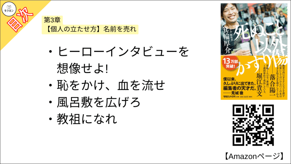 【死ぬこと以外かすり傷 目次】第3章【個人の立たせ方】名前を売れ【箕輪厚介・要点・もくじ】