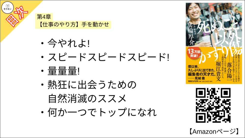 【死ぬこと以外かすり傷 目次】第4章【仕事のやり方】手を動かせ【箕輪厚介・要点・もくじ】