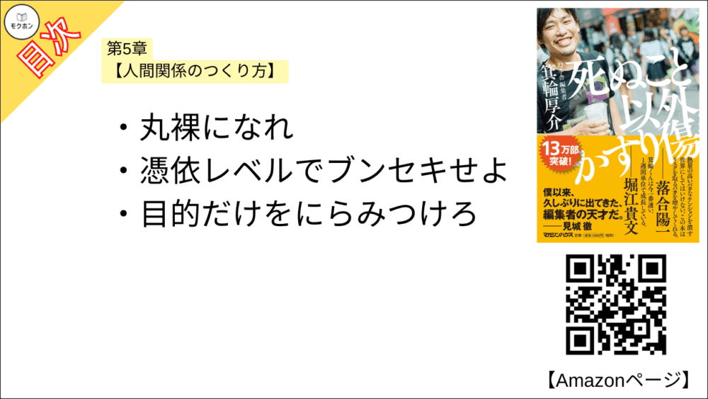 【死ぬこと以外かすり傷 目次】第5章【人間関係のつくり方】【箕輪厚介・要点・もくじ】
