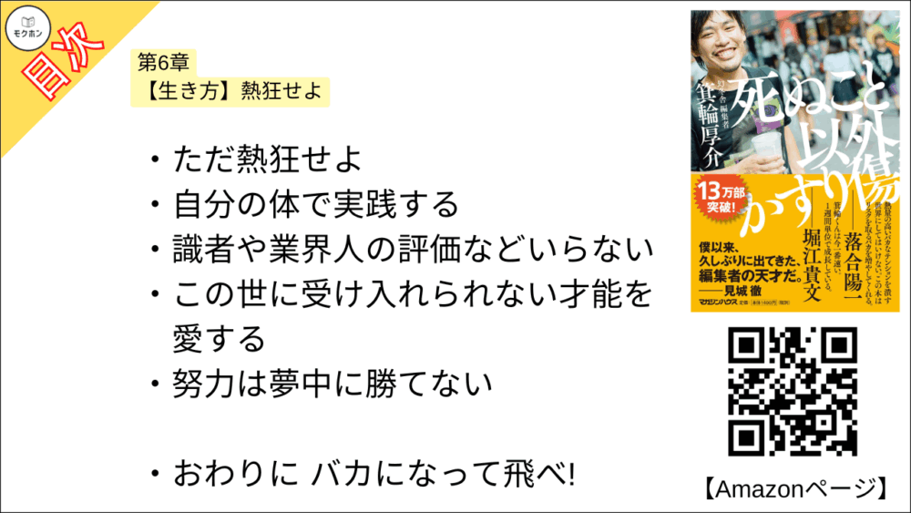【死ぬこと以外かすり傷 目次】第6章【生き方】熱狂せよ【箕輪厚介・要点・もくじ】