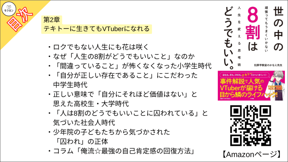 【世の中の8割はどうでもいい。 目次】第2章 テキトーに生きてもVTuberになれる【犯罪学教室のかなえ先生・要点・もくじ】
